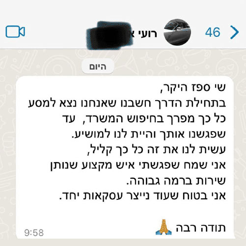 אנו בספז נדל״ן נלחמים על הבית העסקי המדויק עבורכם. הצוות שלנו מורכב מאנשי מקצוע שמשרתים ושירתו במערך הלוחם המונעים מנחישות ודבקות במשימה, המשלבים ניסיון עשיר בנדל"ן מסחרי עם זווית ראייה הנדסית ייחודית.